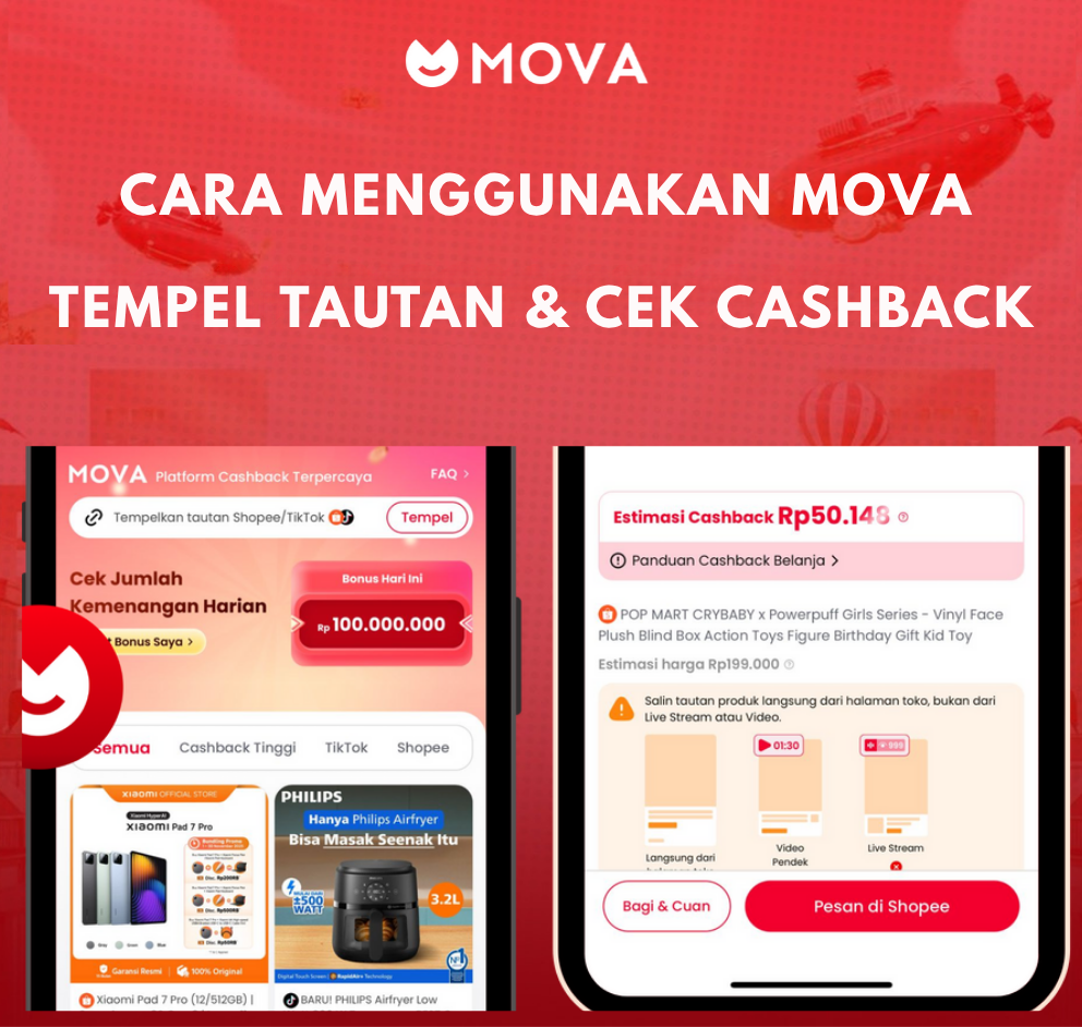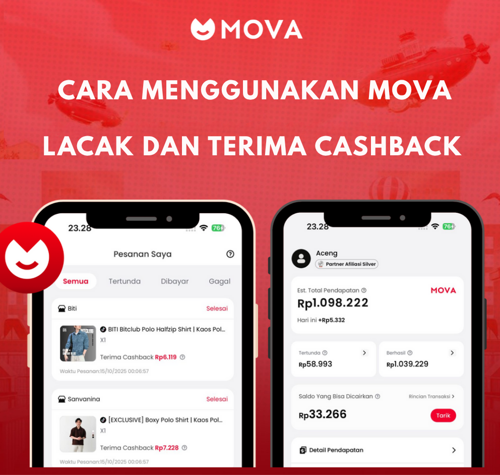 Apa itu MOVA? MOVA adalah aplikasi revolusioner yang menjembatani Anda dengan peluang cashback dari setiap transaksi belanja di Shopee dan TikTok.